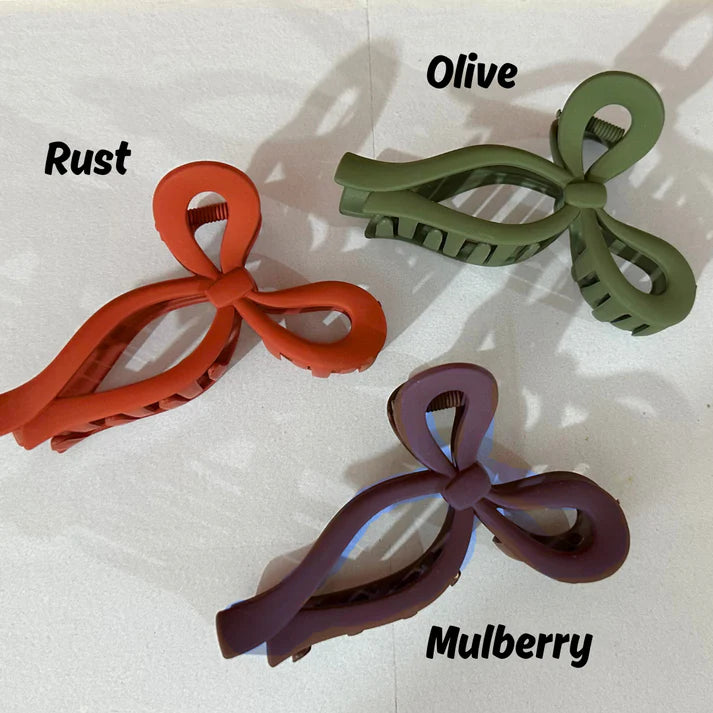 Level-up your hair game with the Bow Claw Clips—a perfect blend of elegance and functionality. Designed in a delicate bow shape, these matte-finish claw clips provide a strong yet gentle hold for all hair types. The soft-touch material ensures a secure grip without tugging, making them ideal for everyday wear or special occasions. Available in a stunning range of muted, earthy, and pastel tones, they complement any outfit effortlessly. Whether you're styling a casual updo or adding a chic accent to your look, these bow claw clips bring a graceful, feminine touch to your hairstyle.